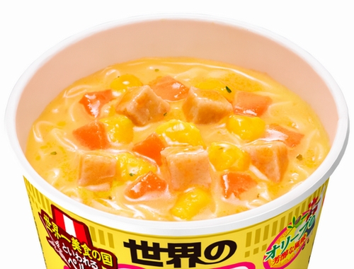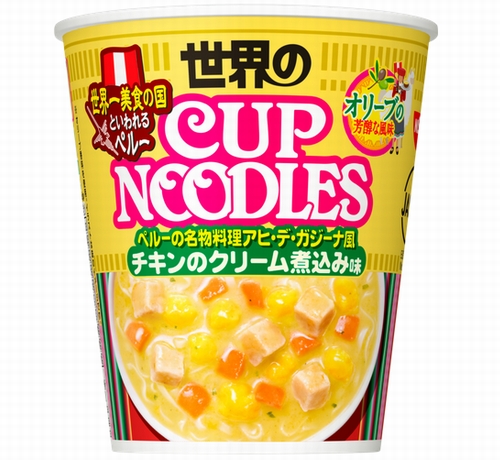 “世界のおいしいを、お届け!” がコンセプトの「世界のカップヌードル」シリーズは、世界各国で親しまれている料理を素材やレシピにこだわって再現した商品。今回登場する「ペルー式チキンのクリーム煮込み味」は、チキンのうまみ、黄色唐辛子とオリーブの風味をきかせたエキゾチックな味わいが特長のペルーの名物料理“アヒ・デ・ガジーナ”をカップヌードルで表現したものだ。